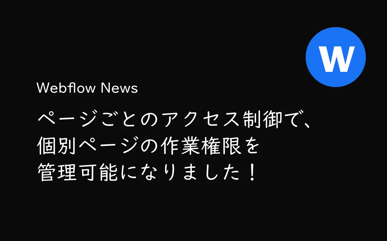 2026年02月04日に、ページごとのアクセス制御機能を導入しました。これにより、チームメンバーが作業できるページを指定できるようになり、担当ページにのみ貢献できる一方で、サイトの他の部分へのアクセスは制限できます。この機能は、Webflow Enterpriseのお客様およびそのパートナー向けに提供されます。